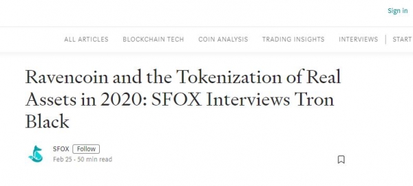[SFOX과 레이븐코인 리드개발자 트론블랙 인터뷰](1) 2020년 자산의 토큰화 전망과 블록체인 기술