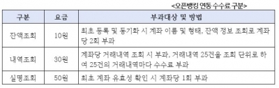 오픈뱅킹 잔액조회 할 때마다 10원씩 수수료