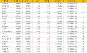 [표](14일현재) 거래금액 코스피 Top 20 (전거래일 정규장마감 현재/시간외일부포함)