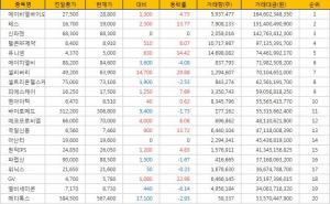 [표](14일현재) 거래금액 코스닥 Top 20 (전거래일 현재/시간외일부포함)