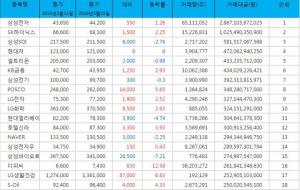 [(주간/종합) 코스피 거래금액 Top 20] 삼성전자 주간 거래금액 1위, SK하이닉스, 삼성SDI, 현대차, 셀트리온 주가 순으로 상위 기록.