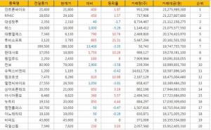 [표](19일현재) 거래금액 코스피 Top 20 (전거래일 정규장마감 현재/시간외일부포함)
