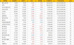 이밖에 코스피 증권시장 거래량 상위 10위에서 20위에 필룩스 주가는 전일대비 700원 하락해 10700원 주식가격으로 거래 중이다. 필룩스의 고가와 저가는 각각 11350원, 11400원을 기록하며 필룩스 주가가 장중 거래 중이다.