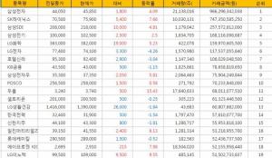 [표](21일현재) 거래금액 코스피 Top 20 (전거래일 현재)