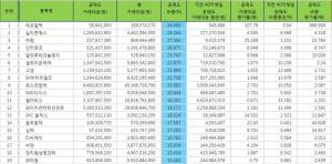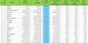 [표](25일기준) 코스피 공매도 특징주 Top 25 (전일 장마감 한국거래소 기준)