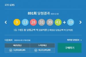 로또당첨번호조회,892회예상당첨금 120억 넘어서…로또 판매 추첨시간 얼마남지 않아 누적판매금 501억원..제891회 지난주 당첨번호 9,13,28,31,39,41 보너스번호 19..1등당첨지역은 7곳.
