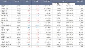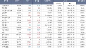◇ (주간/종합) 코스피 거래대금 Top 20 (2019년 12월 30일 ~ 1월 3일/주가 현황).