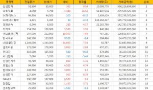 [표](7일현재) 거래금액 코스피 Top 20 (전거래일 현재)