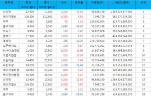 [(주간/종합) 코스닥 거래대금 Top 20] 신라젠 주간 거래대금 1위, 에이치엘비, 빅텍, 흥구석유, 라닉스 주가 순으로 상위 기록.