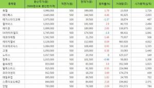 [표](주간 Top 20) 코스피 환산주가 순위 (액면 5000원 환산가격, 10일일 장마감 기준).