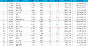 [표](10일기준) 코스닥 거래량 Top 30 (전일 장마감 기준)