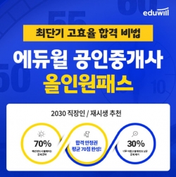 종합교육기업 에듀윌이 하루 2시간 투자로 공인중개사 시험에 합격할 수 있게 압축 커리큘럼을 제공하는 ‘하루 2시간 올인원패스’를 운영한다.