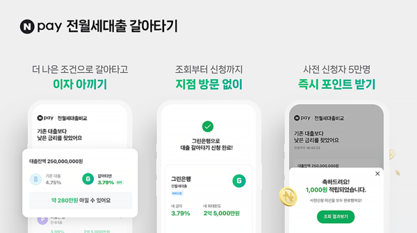 주택담보대출에 이어 전월세대출도 이제 네이버페이에서 손쉽게 비교하고 갈아탈 수 있다.