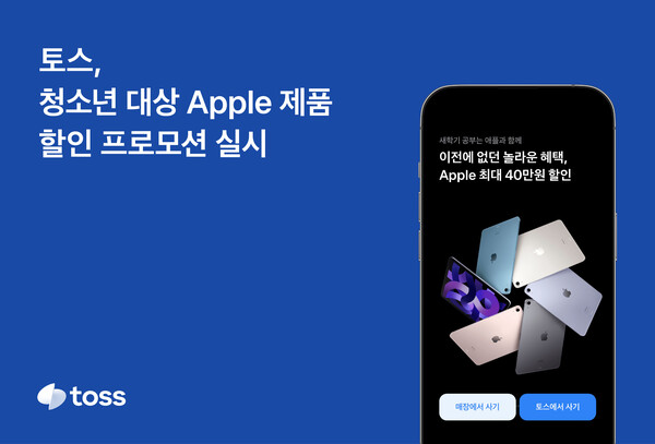 모바일 금융 서비스 ‘토스’를 운영하는 비바리퍼블리카(이하 토스)는 청소년을 대상으로 애플(Apple) 제품 할인 행사를 실시한다고 13일 밝혔다.
