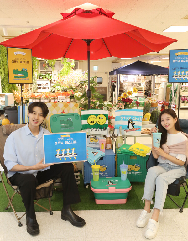 이마트가 5월 본격적인 캠핑 시즌에 맞춰 인기 일러스트레이터 '노이신' 작가와 협업한 한정판 캠핑과 피크닉 용품 18종을 선보인다.