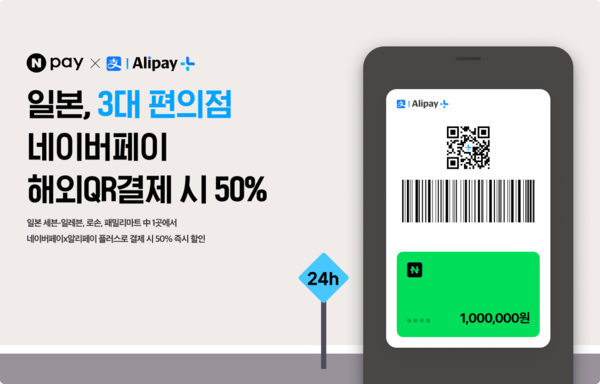 7월 한달 간 일본 주요 편의점서 네이버페이로 알리페이플러스 QR결제시 50% 즉시 할인