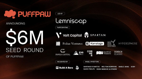 베라체인(Berachain) 기반 디핀(DePIN) 프로젝트 퍼프포우(Puffpaw)가 600만달러(한화 80억4300만원)를 투자 유치에 성공했다. 디핀은 탈중앙화 물리 인프라 네트워크(Decentralized Physical Infra Network) 약자다. 교통·전력망·네트워크 등 물리적 인프라(실물)의 통제 또는 소유권을 블록체인 기술을 활용해 탈중앙화하는 네트워크를 뜻한다.