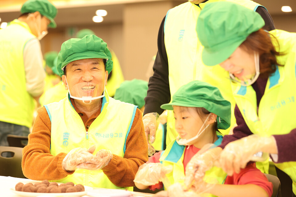 13일 하나금융그룹에 따르면 이날 명동사옥 대강당에서 진행된 봉사활동에는 함영주 회장과 100여명의 그룹 임직원, 이들의 가족들로 구성된 '하나사랑봉사단'이 소외된 이웃들에게 온기를 전하는 뜻깊은 시간을 가졌다.