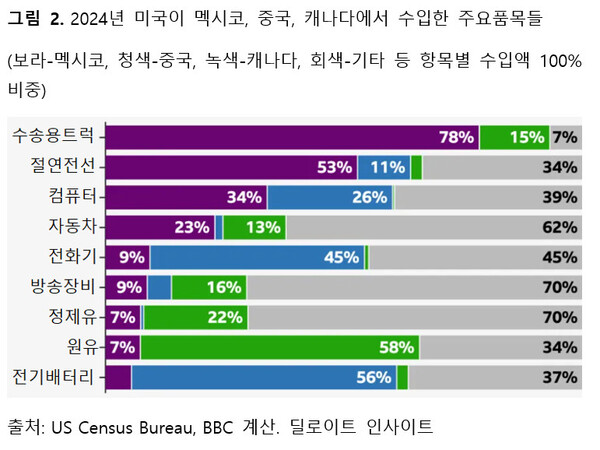 실제로 미국 대형 유통업체들은 며칠 내로 멕시코산 농산물 가격을 인상해야 할 수 있다고 경고하고, 가전 및 전자제품 공급망이 중국과 멕시코 등에 크게 의존하는 만큼 미국 소비자 가격 인상은 불가피할 것이라고 우려를 표명했다.