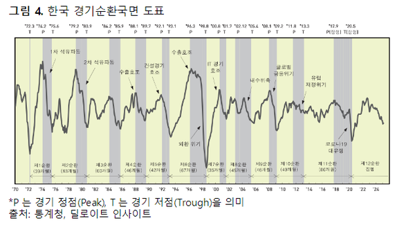 한국의 경우 통계청이 경기순환 국면을 판정하고 있다. 먼저 동행지수 순환변동치 등을 통해 경기 전환점을 설정하고, GDP를 활용한 검증 이후 기타 분석기법을 활용해 확인, 경제 상황 점검을 통해 재확인한다. 그런 확인 작업이 끝나면 전문가 자문회의를 개최한 뒤 국가통계위원회(경제통계분과)에 상정해 최종 경기 전환점을 발표한다. 현재 한국 경제는 지난 2020년 5월 저점을 통과해 제12 순환기를 지나고 있는데, 경기 정점이 이미 한참 지난 것으로 보이지만 판단을 내리지 않고 있다.