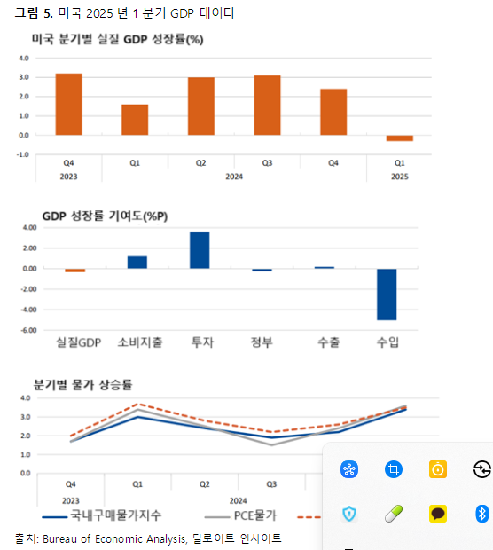 이러한 경제의 위축은 주로 관세 부과에 앞선 선제적인 수입 확대 등으로 인한 순수출 급감과 정부지출 감소에 따른 것으로, 민간투자 등 전반적인 수요는 견조한 상황이다.