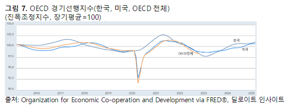 CLI는 경기 순환의 전환점에 대한 조기 신호를 제공하기 위해 고안된 지수로, 경제 활동이 장기적 잠재 수준을 중심으로 변동하는 모습을 보여준다. 보통 지수가 100선 이상이면 경기 확장, 그 이하이면 수축 국면을 시사한다.