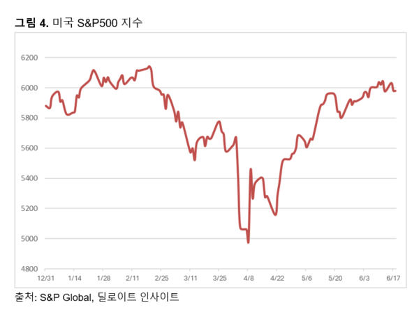한편 주식시장에서는 거의 ‘아무 일도 일어나지 않았다’(Nothing ever happens)라고 할 정도로 침착한 모습이다. 미국 우량주로 구성된 S&P500 지수는 사태 발생 직전과 비교할 때 5거래일 동안 1.1% 내리는 데 그쳤다. 6월 18일 지수가 소폭 하락한 것은 중동 사태의 영향이 아니라 연준이 금리 인하를 서두르지 않겠다는 자세를 보인 데 따른 것이다.
