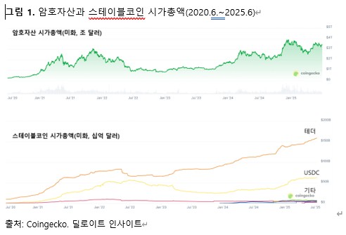 '스테이블코인'(stablecoin) 발행 및 거래 시장이 급격하게 성장한 가운데 주요국의 법제화를 통해 제도권으로 진입이 임박하자, 주요국 정부와 금융당국은 물론 민간 은행과 기업, 투자자 등 모든 경제 주체의 관심이 집중되고 있다. 탈중앙화 금융(DiFi) 시스템의 핵심 암호자산(crypto asset, 가상자산)이 기존 금융 제도권으로 편입된다는 것은, 디지털 경제에서 중앙은행 발행 법정화폐가 지배하는 기존 통화제도의 구조가 재편된다는 의미다. 이는 금융 및 자본시장의 기회이자 위기다.