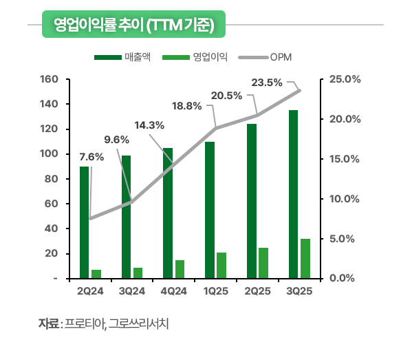 한용희 그로쓰리서치 대표는 “프로티아는 알레르기 진단 시장에서 독보적인 경쟁력을 지닌 기업으로, 글로벌 시장에서의 빠른 확장과 함께 뛰어난 영업 레버리지를 실현하고 있다”고 강조했다.